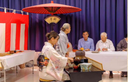 共催する地元文化協会の積極的な協力と席主をつとめる宗匠方の尽力によって、茶道愛好家が多数参加し盛会を極めています。