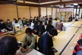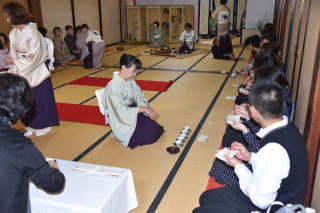 共催する地元文化協会の積極的な協力と席主をつとめる宗匠方の尽力によって、茶道愛好者が多数参加し盛会を極めています。